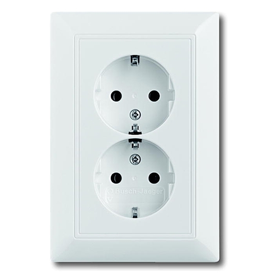 • Розетка 2-ая с заземлением моноблок, с защитными шторками ABB Basic55 Слоновая кость