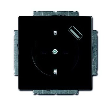 • Розетка Schuko с заряд. устр. USB 20 EUCBUSB-885-500 16A 700 мА электр. защита от перегрузки и КЗ безвинтовые клеммы ABB Future Черный бархат