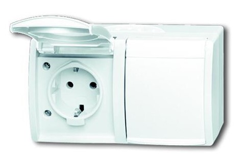 • Блок из 1-клавишного переключателя и розетки Schuko откр. монтаж IP44 ABB Ocean Альпийский белый