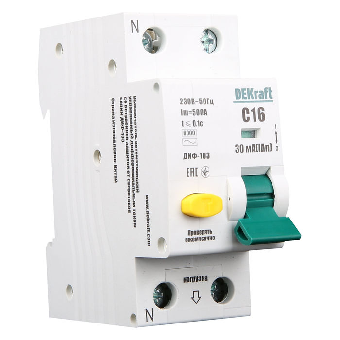 Вы можете купить АВДТ 1Р+N 25А 30мА тип A х-ка С диф-103 6кА DEKraft в интернет-магазине «РКМ Электро» по цене 1942 руб.. На странице имеется подробная информация о товаре: