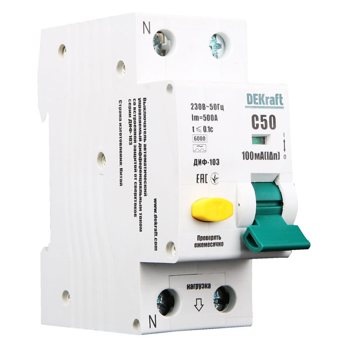 Вы можете купить АВДТ 1Р+N 50А 100мА тип A х-ка С диф-103 6кА DEKraft в интернет-магазине «РКМ Электро» по цене 2240 руб.. На странице имеется подробная информация о товаре:
