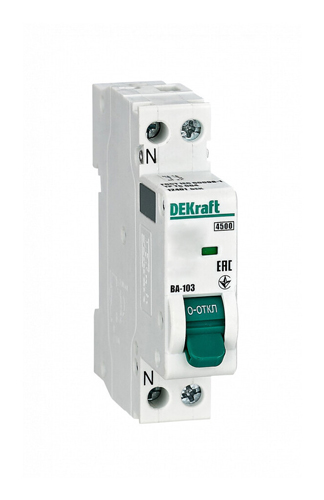 Автомат 1P+N 10А (C) 4,5кА DEKraft ВА-103 12401DEK