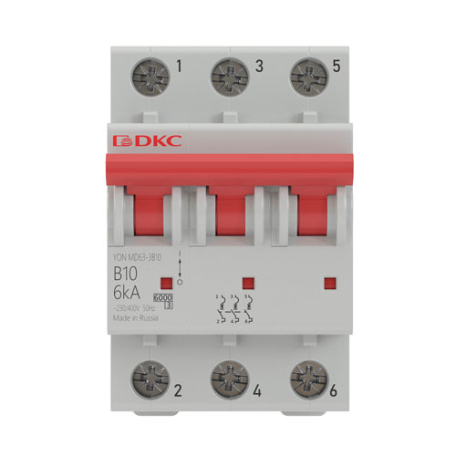 • Автоматический выключатель 3P 10A (B) 6kA DKC YON MD63