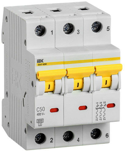 • Автоматический выключатель 3Р 50А (С) 6кА IEK ВА47-60M KARAT