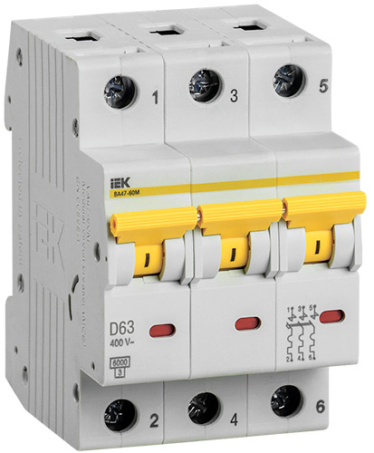 • Автоматический выключатель 3Р 63А (D) 6кА IEK ВА47-60M KARAT