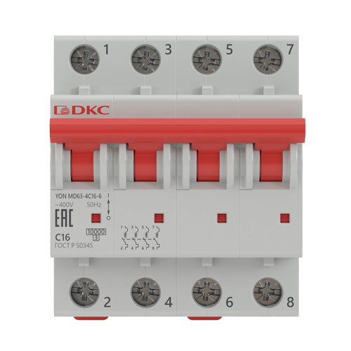 • Автоматический выключатель 4P 4A (C) 10kA DKC YON MD63