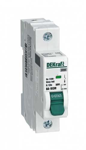 Автоматический выключатель без теплозащиты 1P 6А х-ка D 6кА DEKraft ВА-103M 12536DEK