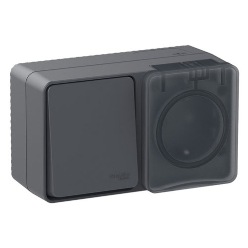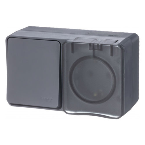 • Блок: Розетка с/з со шторками + выключатель 1-клавишный 10А Schneider Electric AtlasDesign Profi54 Антрацит