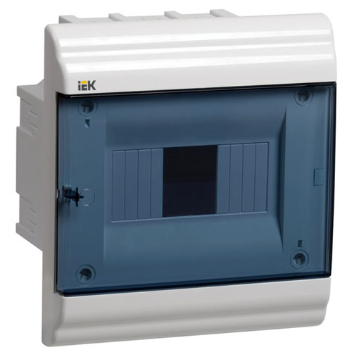 • Бокс модульный пластиковый встраиваемый с дверцей 222х208х92мм, 1Pяд/8мод, IP41 IEK ЩРВ-П-8