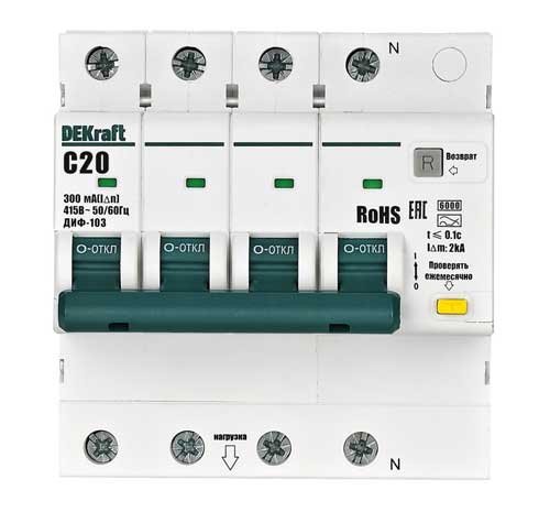 Вы можете купить DEKraft ДИФ-103 Дифавтомат 3P+N 20А 300мА AC C 6кА в интернет-магазине «РКМ Электро» по цене 3220 руб.. На странице имеется подробная информация о товаре: