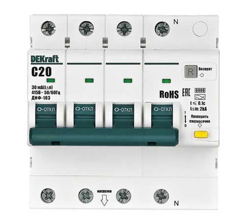 Вы можете купить DEKraft ДИФ-103 Дифавтомат 3P+N 20А 30мА AC C 6кА в интернет-магазине «РКМ Электро» по цене 3067 руб.. На странице имеется подробная информация о товаре: