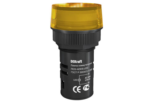 • Лампа коммутационная ADDS 22мм LED желтая 220В AC/DC DEKraft ЛK-22