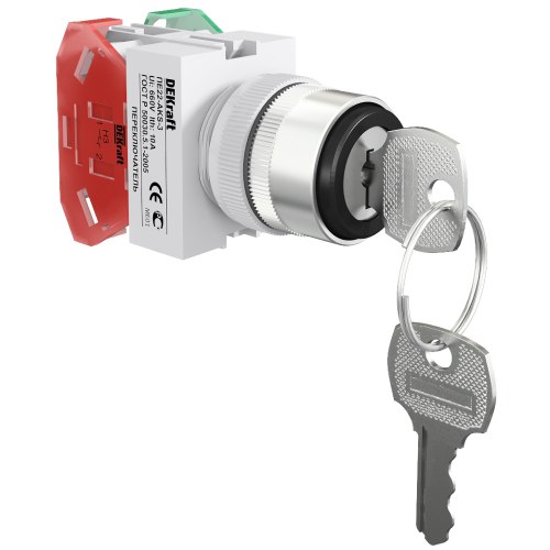 • Переключатель на 3 пол. прав. без фикс. I-O-II с ключ. 2НО DEKraft ПЕ-22