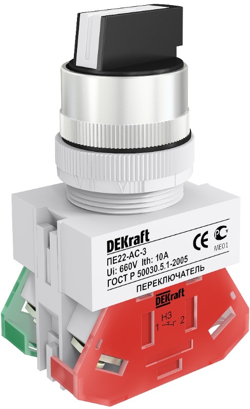Переключатель BL 22мм 2-позиционный I-O зеленый-красный DEKraft ПЕ-22 25063DEK