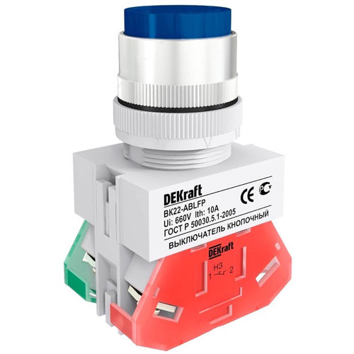 Вы можете купить Выключатель кнопочный с фиксацией ABFP 22мм 220В синий DEKraft ВK-22 в интернет-магазине «РКМ Электро» по цене 352 руб.. На странице имеется подробная информация о товаре: