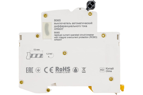 • Дифференциальный автомат 1P+N 13A 30mA тип A IEK ARMAT АВДТ B06S