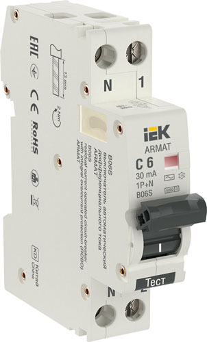 Дифференциальный автомат 1P+N 13A 30mA тип AC IEK ARMAT АВДТ B06S AR-B06S-1N-B13C030