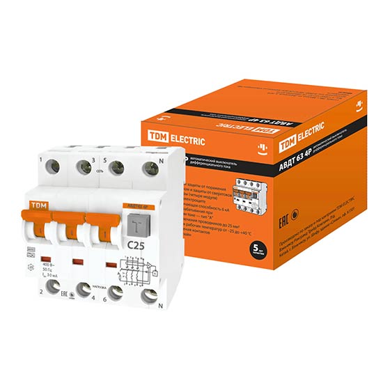 Вы можете купить Дифференциальный автомат 3P+N 25 (C) 6kA тип A 30mA TDM АВДТ63 в интернет-магазине «РКМ Электро» по цене 2602 руб.. На странице имеется подробная информация о товаре:
