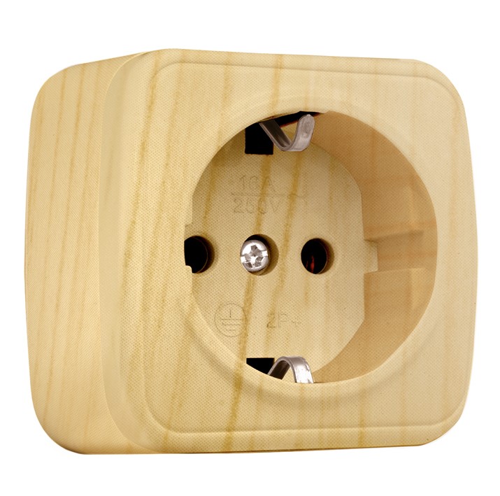 • Розетка 1-местная ОП 16A с заземлением EKF Basic Минск Светлое дерево