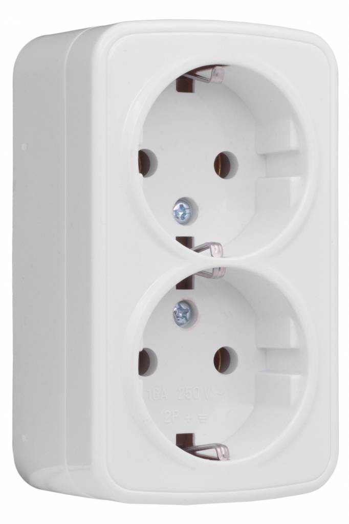 • Розетка 2-местная ОП 16A с заземлением EKF Basic Минск Белый