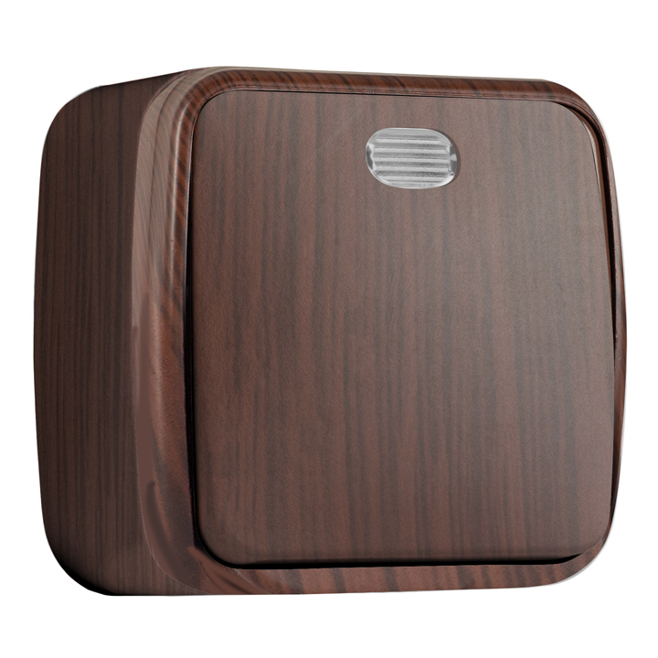 • Выключатель 1-клавишный ОП 10A с индикатором EKF Basic Минск Тёмное дерево