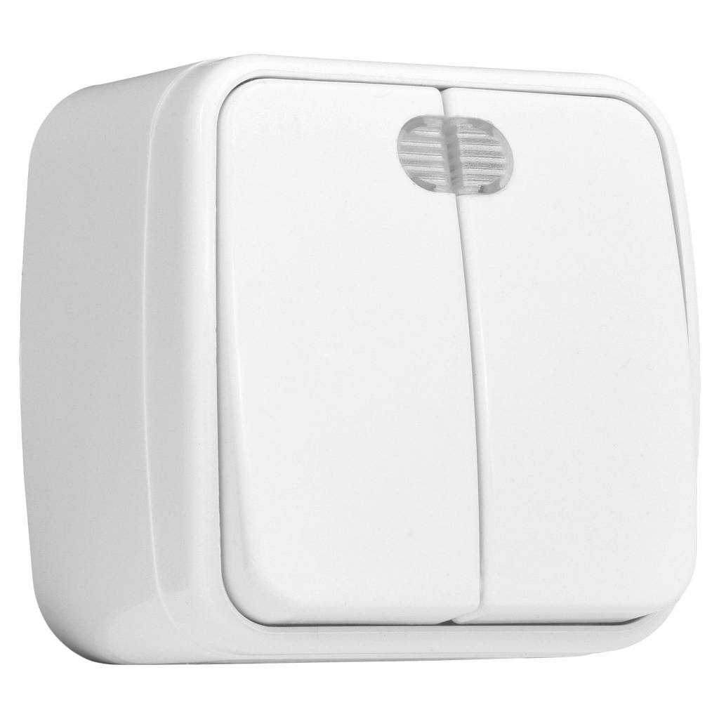 • Выключатель 2-клавишный ОП 10A с индикатором EKF Basic Минск Белый