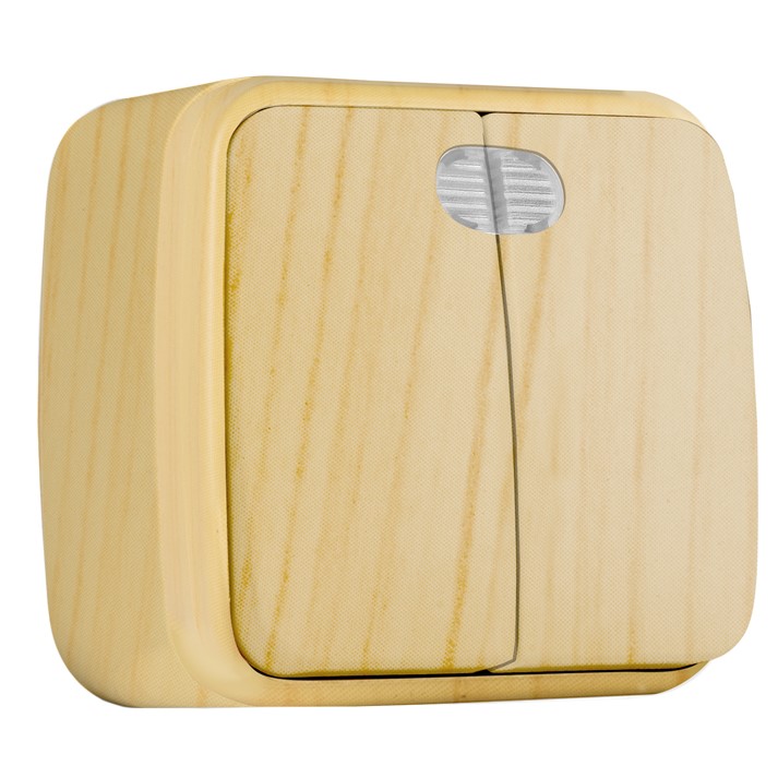 • Выключатель 2-клавишный ОП 10A с индикатором EKF Basic Минск Светлое дерево
