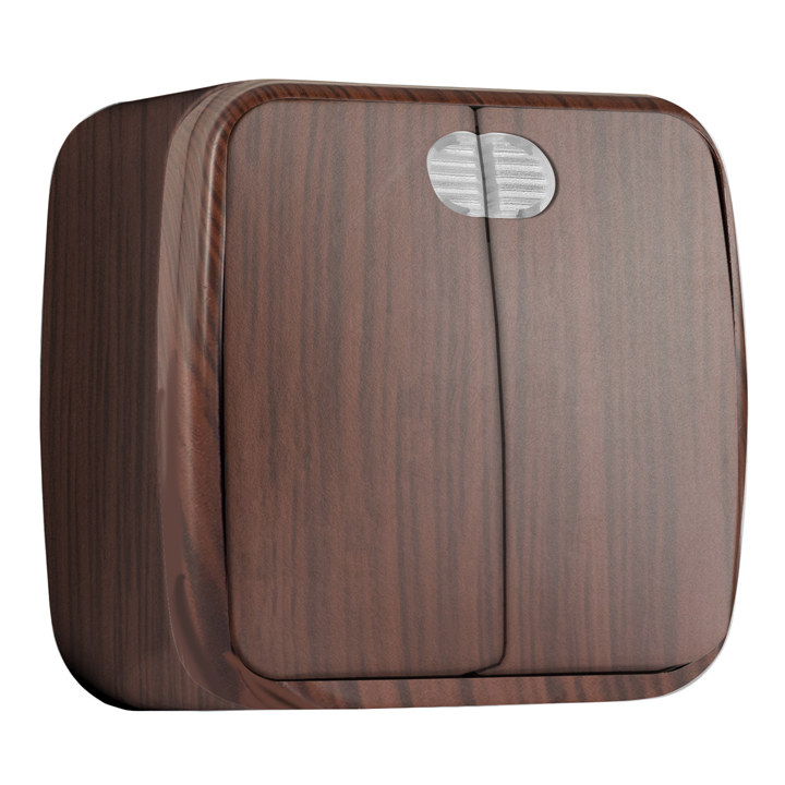 • Выключатель 2-клавишный ОП 10A с индикатором EKF Basic Минск Тёмное дерево