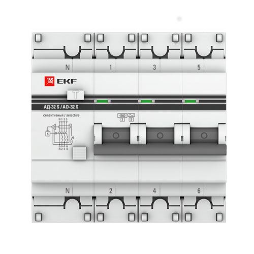 Дифференциальный автомат селективный 3P+N 32A/300mA EKF PROxima АД-32 DA32-32-300S-4P-pro