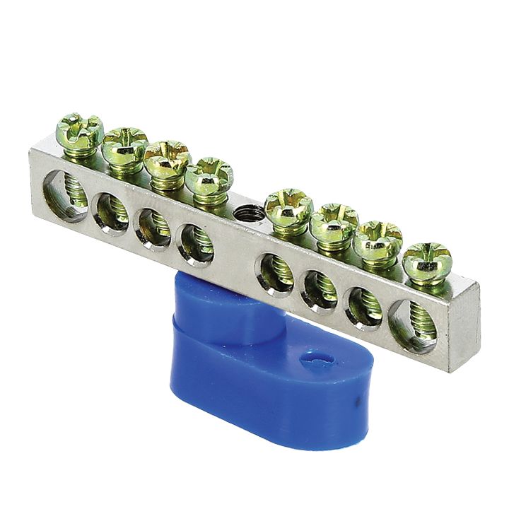 Шина "0" 6х9мм 10 отверстий латунь синий нейлоновый корпус комбинированный EKF PROxima N sn0-63-10-dn