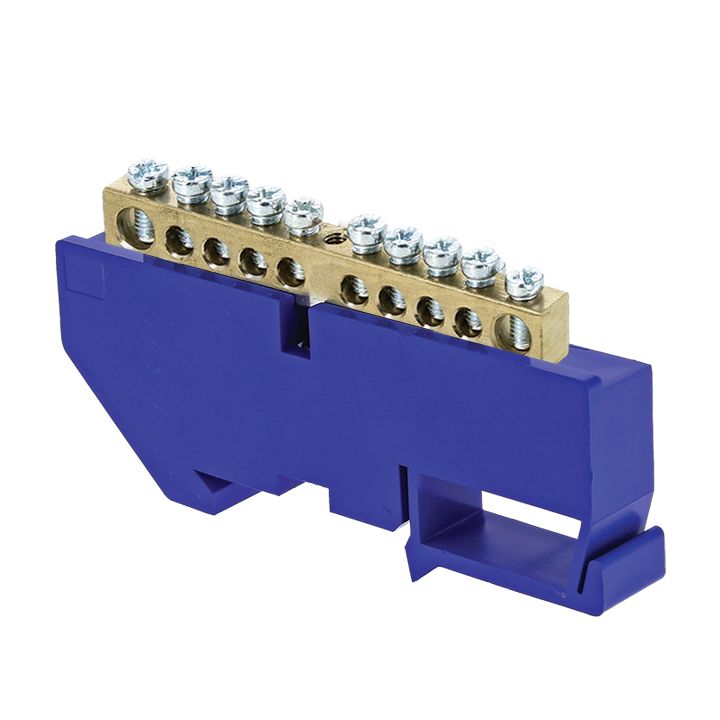 Шина "0" 8х12мм 10 отверстий латунь синий нейлоновый корпус комбинированный EKF PROxima N sn0-125-10-dn