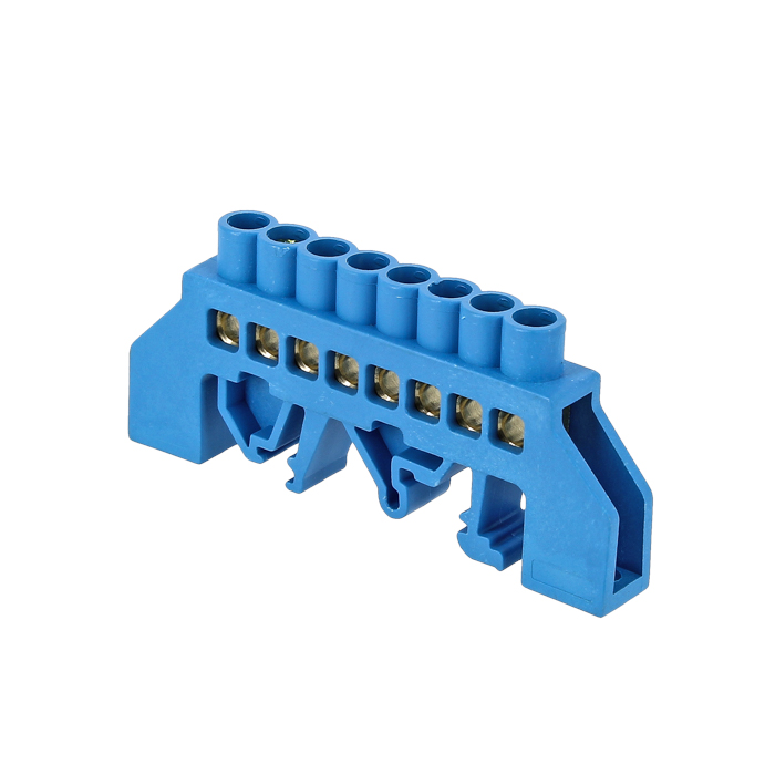 Шина "0" 6х9мм 8 отверстий латунь синий нейлоновый корпус комбинированный EKF PROxima N sn0-63-08-dn