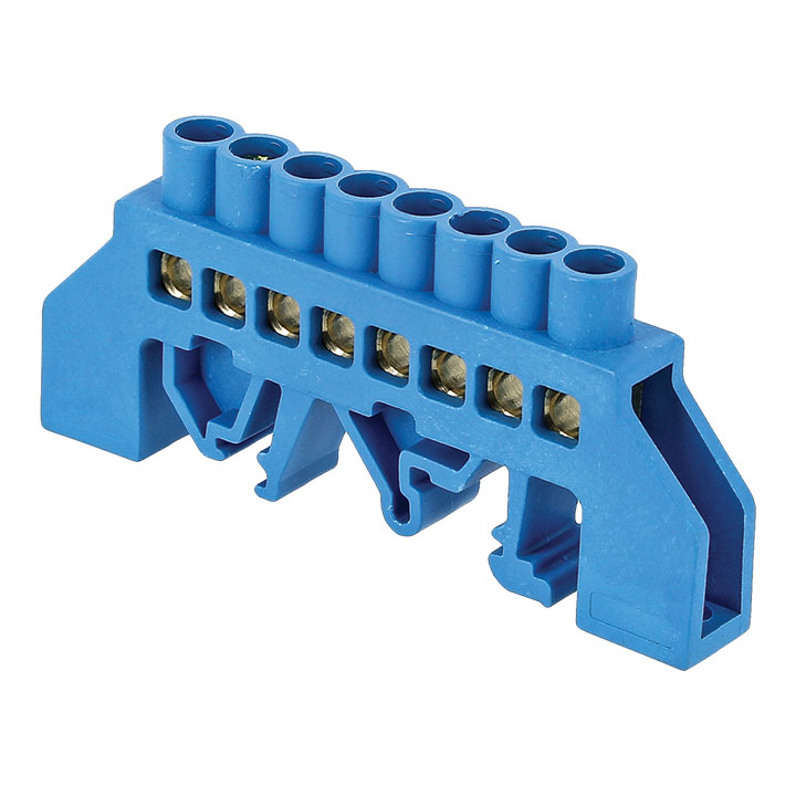 • Шина "0" 6х9мм 8 отверстий латунь синий нейлоновый корпус комбинированный EKF PROxima N