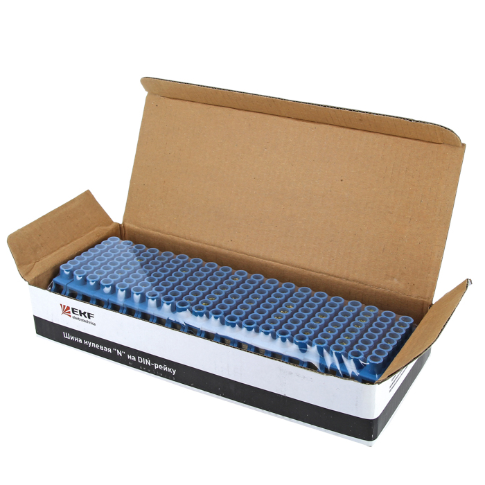 Шина "0" 6х9мм 10 отверстий латунь синий изолятор на DIN-рейку EKF PROxima N sn0-63-10-d
