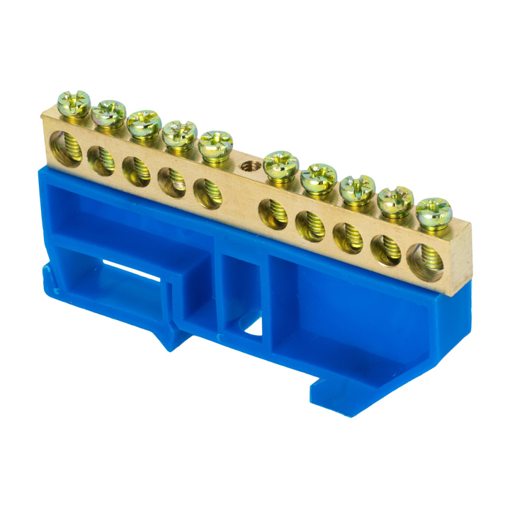 • Шина "0" N 8х12мм 12 отверстий латунь синий нейлоновый корпус комбинированный EKF PROxima N