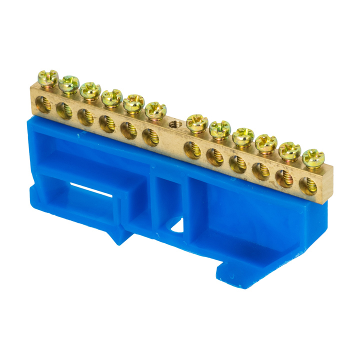 • Шина "0" N 8х12мм 12 отверстий латунь синий нейлоновый корпус комбинированный EKF PROxima N