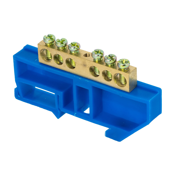 • Шина "0" 8х12мм 6 отверстий латунь синий изолятор на DIN-рейку EKF PROxima N