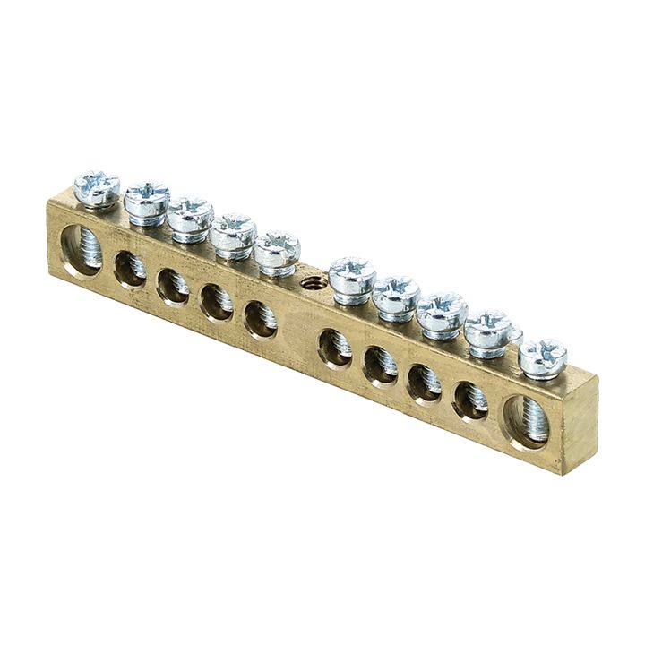 • Шина "ноль-земля" 6х9мм 10 отверстий латунь крепеж по центру EKF PROxima PEN