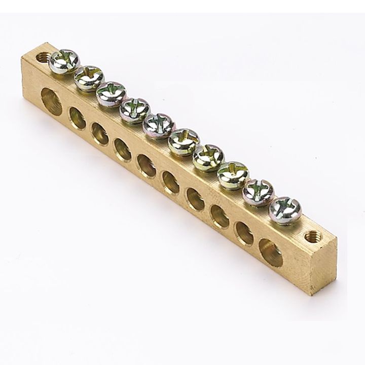 • Шина "ноль-земля" 8х12мм 10 отверстий латунь крепеж по краям EKF PROxima PEN