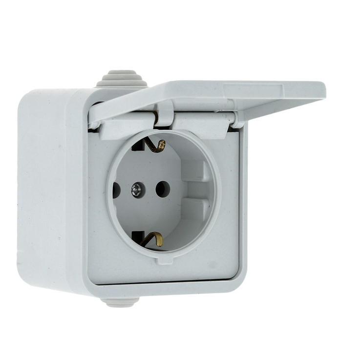 Розетка 1-местная 16A с заземлением с крышкой IP44 с защитными шторками EKF PROxima Прага Белый EKR16-029-10-440