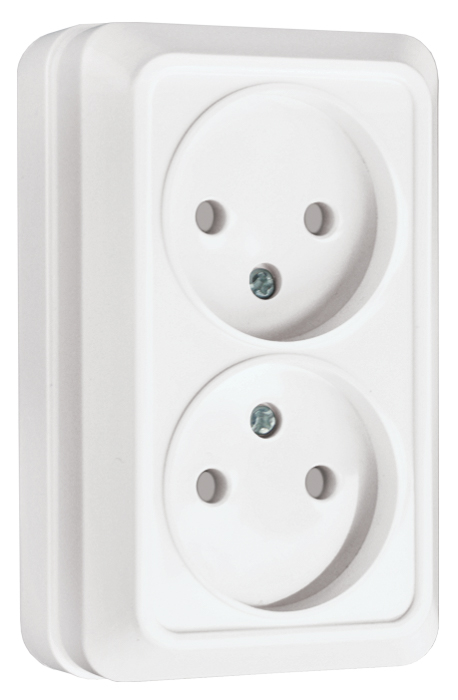 • Розетка 2-местная 10A без заземления с защитными шторками EKF PROxima Рим Белый
