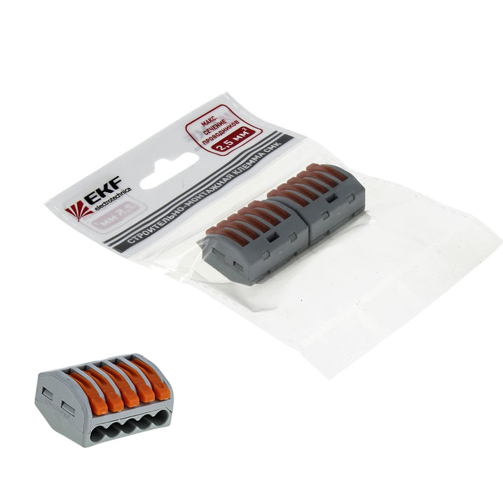 • Строительно-монтажная клемма с рычагом 5 отверстий 0,08-2,5мм2 EKF PROxima СМК 222-415