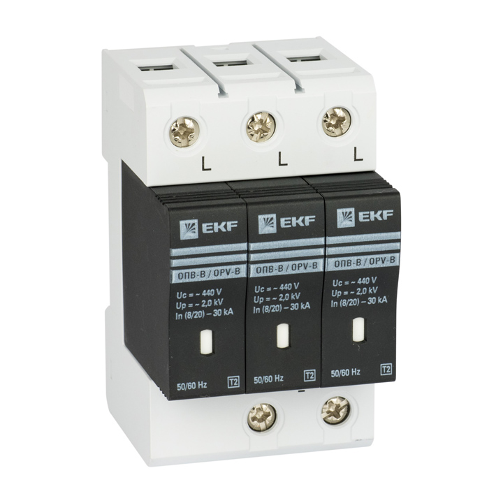• Устройство защиты от импульсных перенапряжений ОПВ-D/3P In 5kA 230В с сигнализацией EKF PROxima