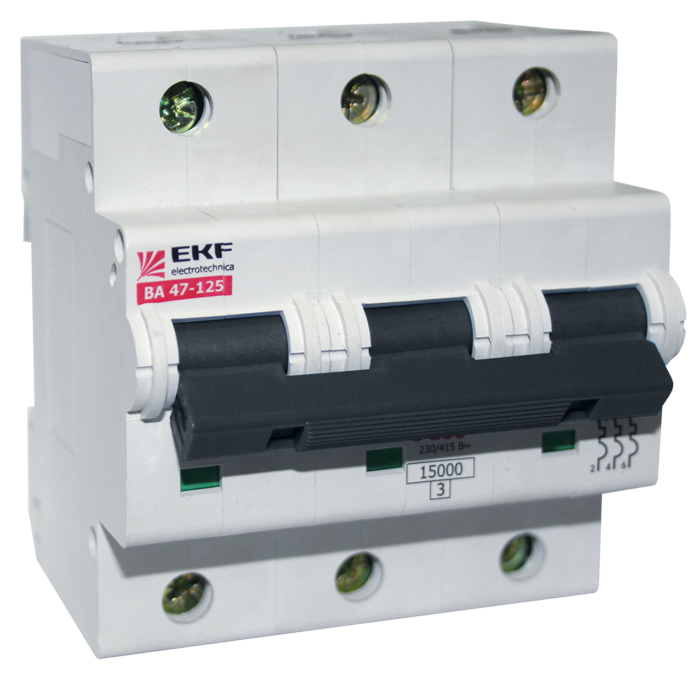 Автоматический выключатель 3P 125A D 15kA EKF PROxima ВА 47-125 mcb47125-3-125D