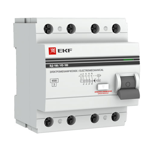 • Устройство защитного отключения 4P 100A/100mA электромеханическое EKF PROxima ВД-100
