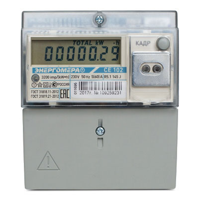• Счетчик 1Ф 4Т+1Т (аварийный) min 5A/ max 60A 230В класс 1 D+Щ ЖКИ оптопорт Энергомера CE102 R5.1 145-J
