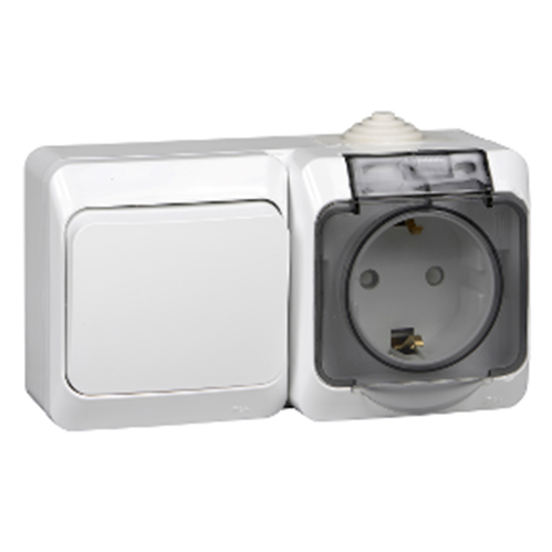 Этюд iр44 о/у блок: роз. з/к со шт. 16А 250B, выкл.2-клав.10А, белый, россия SE BPA16-242B