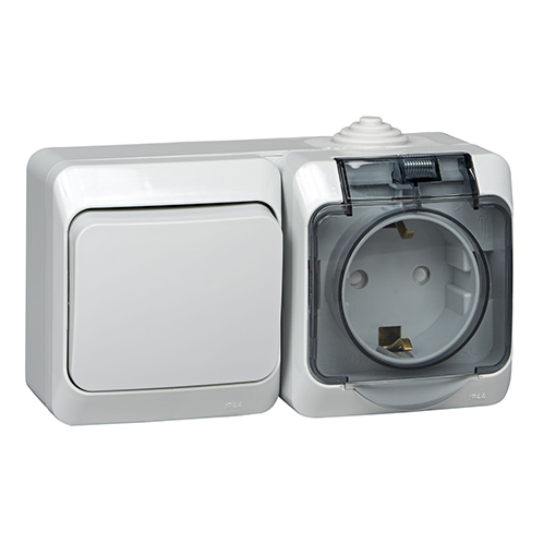 • Этюд iр44 о/у блок: роз. з/к со шт. 16А 250B, выкл.2-клав.10А, серый, россия SE