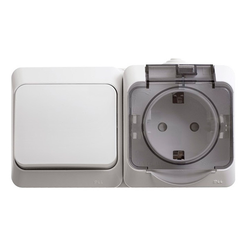 • Этюд iр44 о/у блок: роз. з/к со шт. 16А 250B, выкл.1-клав.10А, белый, россия SE