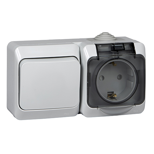 • Этюд iр44 о/у блок: роз. з/к со шт. 16А 250B, выкл.1-клав.10А, серый, россия SE
